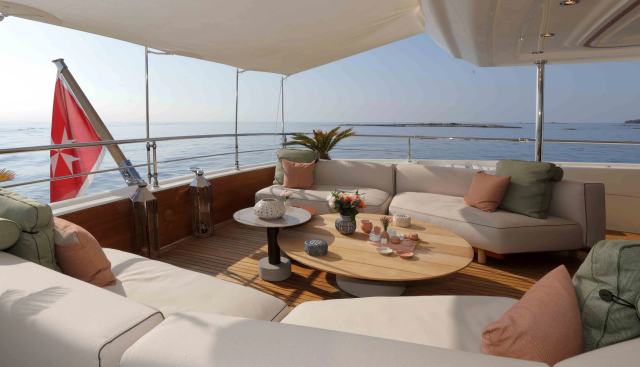 AERO takes up to 10 guests across five cabins with seven crew, a ratio that supports attentive service without excess formality. Her charter area covers the western Italian coast, including the Amalfi Coast, Sardinia, Corsica, Monaco, the French Riviera, and the broader Mediterranean. She is a practical choice for couples or small groups of friends seeking to cover multiple anchorages efficiently. Guests looking for the largest possible guest spaces, long offshore range — her range of 560 nautical miles is limited — or extensive entertainment facilities may find her scope constrained.
