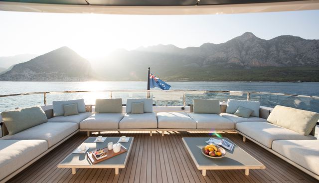 The Alia Yacht build brings Turkish yard experience in steel construction to a Vripack design brief, resulting in a vessel whose proportions at just under 500 GT are efficient for her length. The 2025 refit is a current-cycle refresh that positions her hull and systems at a recent standard. Caterpillar twin engines drive her to a maximum of 13 knots with a 3,300nm range, characteristics suited to the relatively short passages of her western Mediterranean charter regions.