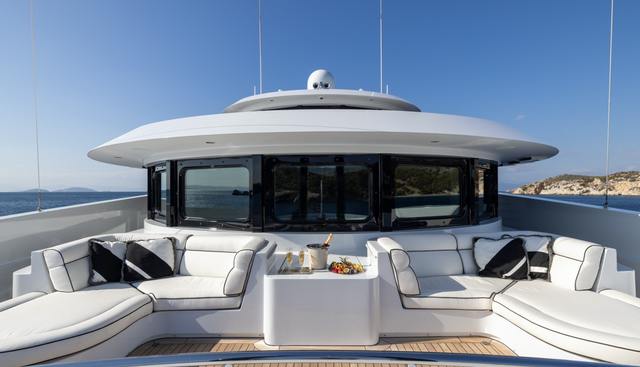 At 60 metres with a 5,600nm range and Caterpillar twin engines, ALFA G has the reach to move comfortably between the western and eastern Mediterranean without the operational constraints that affect smaller vessels. The 2024 refit applied to a 2004 hull is a substantial recent investment, and Winch Design's exterior has aged well in a way that more fashion-driven design of the same era often has not. The Portuguese bridge, a structural feature associated with offshore passage-making and utility, reflects the vessel's seagoing capability.