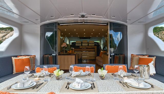 She accommodates up to 11 guests across five cabins, with four crew. Charter regions include Corsica, Sardinia, and the Italian coast. The combination of high speed and concentrated guest capacity makes ANNELISE I well suited to groups who want to cover significant coastal ground quickly — hopping between ports, anchorages, and islands over a short charter period. Those seeking large formal social decks, expansive beach clubs, or a large crew service complement should look to longer displacement vessels.