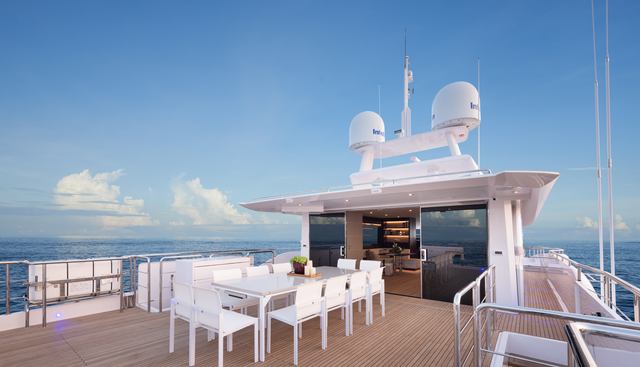 The overall character of Dreams IV is oriented around outdoor living and active water use. The foredeck seating with table and sunpads encourage guests to spend time on deck, while the deck Jacuzzi provides a focal point for social time at anchor. The water toy inventory is well-considered for the vessel's size — Seabobs, a three-seat Jet-Ski, paddleboards, a wakeboard, and snorkelling equipment point to a programme built around the water rather than around the interior. A gym rounds out the offering for guests who maintain fitness routines while travelling. No tender has been listed in available data, which prospective charterers should clarify directly with the operator.