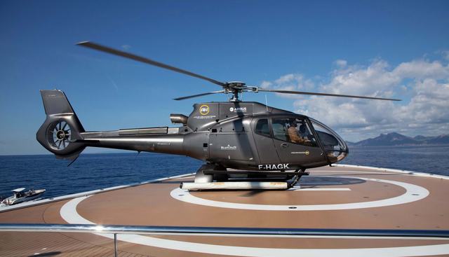 The onboard amenity list is extensive: a full spa incorporating a sauna, steam room, and massage room, a beauty room, a gym with equipment, a helipad, an elevator, a beach club with diving platform, a deck jacuzzi, a tender garage, and underwater lights. Four GoCycle e-bikes extend the experience ashore. Water toys include four jet-skis across Sea-Doo and Yamaha platforms, three Seabobs, three eFoil foilboards, paddleboards, a wakeboard, a waterslide, an inflatable climbing wall, a floating pool, towable toys, fishing equipment, and snorkelling gear. The charter offering is one of the more comprehensively equipped in the superyacht market.