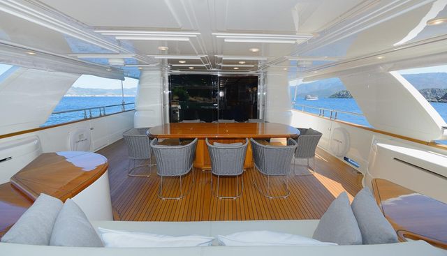 She charters in the Greek islands, with a focus on Mykonos, Santorini, and the broader Aegean. Eight guests are accommodated in four cabins with five crew — a crew-to-guest ratio that supports personalised service at this scale. Her profile suits small groups or a couple with children who value a well-operated vessel over a large one, and who want to focus their time in Greek waters rather than covering extensive ground. Her 1,500-nautical-mile range is adequate for Greek island circuits; those planning Adriatic or Eastern Mediterranean passages should note the limitation.