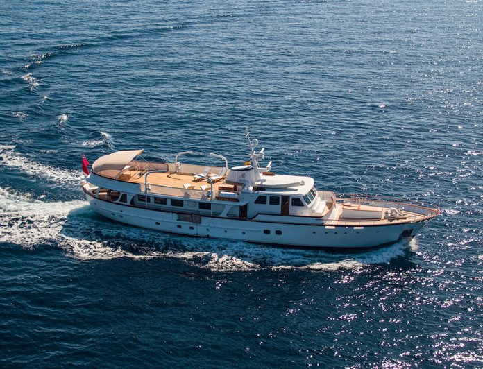 HEAVENLY DAZE is a 32.2-metre steel-hulled displacement yacht built by Feadship in 1972, with a significant refit completed in 2012, sailing under the United Kingdom flag. Her exterior lines were drawn by the De Voogt naval architecture practice — a studio long associated with Feadship's most considered projects — and she carries with her the proportional discipline of an earlier era of Dutch construction. At over five decades old, she is an example of the classic superyacht tradition: a vessel built to last rather than to impress briefly.