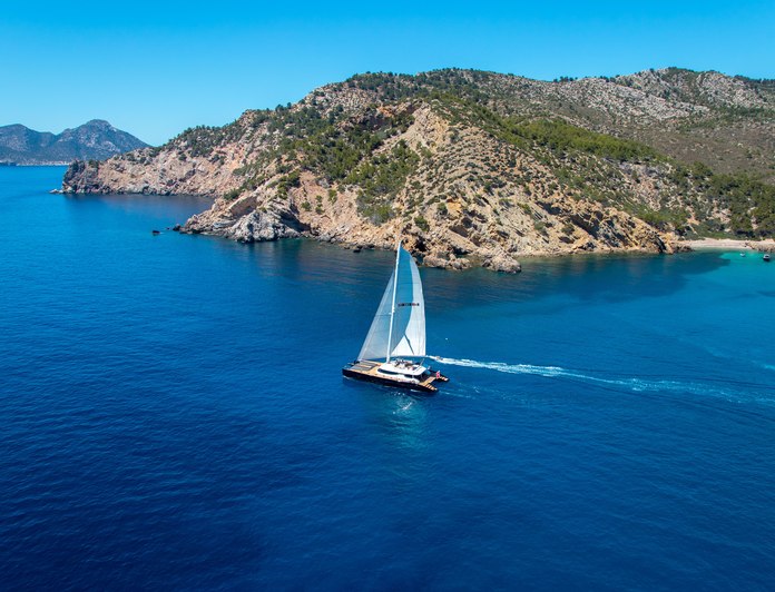 The aluminium construction provides a lightweight, low-maintenance hull well suited to warm-water charter operations. With a cruising speed of 8 knots and a maximum of 15, MASHUA BLUU is characterised by a pace and manner consistent with anchoring, swimming, and making short coastal passages rather than covering distance. The 2016 refit has refreshed her to an acceptable standard for the Balearic charter market, where she operates in waters that reward a slower, more exploratory approach to the coastline.