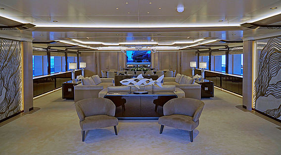 Life aboard O'Pari is oriented around outdoor living and active water use in equal measure. The beach club and swimming platform provide easy water access at anchor, supported by a well-stocked tender garage housing three tenders — the largest stretching to 9.75 metres — alongside a comprehensive water sports inventory that includes jet skis, Seabobs, an inflatable water park, and an air fliteboard. At the same time, the yacht balances activity with recovery: a hammam, sauna, massage room, gym, and deck jacuzzi ensure that downtime is as considered as the water programming. The helipad and onboard elevator reflect the scale of the vessel and add operational flexibility for guests arriving or departing at sea.