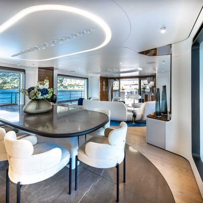 The Azimut Grande 36M platform is a production vessel with a well-established track record, and Salvagni Architetti's interior treatment elevates the guest experience beyond the standard of many comparably sized charter yachts. At 279 gross tonnes, her displacement is notable for her waterline length, reflecting a full-volume interior approach. At-anchor stabilisers address one of the practical limitations of compact displacement yachts in open roadsteads.