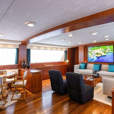 The onboard experience is deliberately uncluttered. Water sports cover a Yamaha Waverunner, two paddleboards, water skiing, wakeboarding, a floating pool, an inflatable water toy, and snorkelling equipment — a practical selection for a vessel of this scale and style. The sun deck, video on demand, and Wi-Fi address modern expectations, while the restrained amenity list reflects a vessel whose primary attraction is the quality of the hull and the craftsmanship of her build rather than resort-hotel infrastructure.
