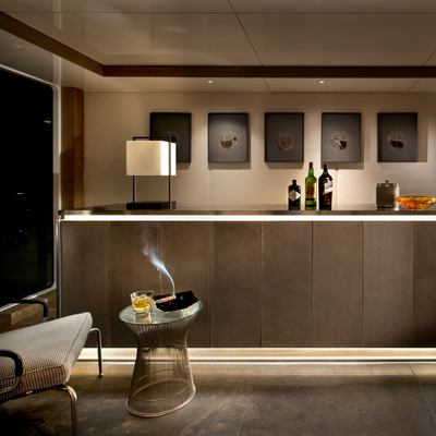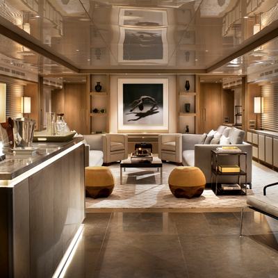Ken Freivokh's exterior work is characterised by clean, functional lines with a premium finish standard, and the CMB Yachts construction reflects a yard with a strong record on custom GRP displacement builds. The displacement hull at 10 knots cruising is purposeful rather than hurried, which suits the Eastern Mediterranean itinerary model well — where proximity to anchorages and coastline rather than passage speed defines the experience. Her 4,606-nautical-mile range gives her considerable autonomy. Stabilizers underway and at anchor contribute to comfort throughout.