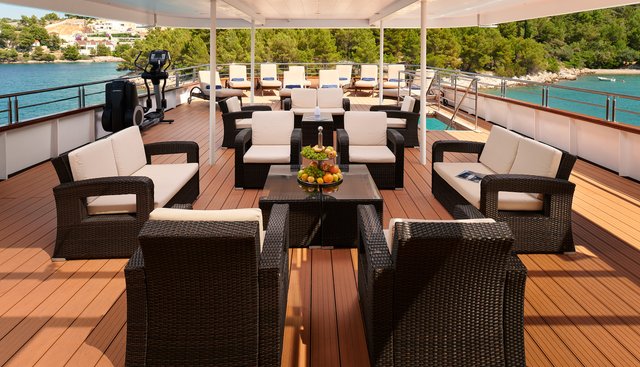 Her most distinguishing characteristic is her guest capacity: she accommodates up to 34 guests across 17 cabins, supported by a crew of 10. This configuration positions her as a group charter vessel — suited to large families, corporate parties, or multi-group bookings — rather than a conventional luxury superyacht for 10 to 12 guests. Her charter regions cover Croatia, Montenegro, and the broader Mediterranean. Guests expecting a private superyacht experience for a small party will find this vessel configured differently; her value proposition is in shared-cost group chartering.
