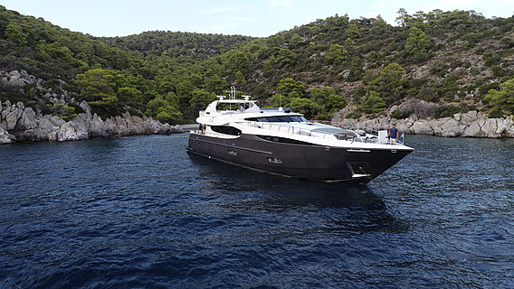 Sanjana is a 32.6-metre displacement motor yacht built by Turkish yard Notika Teknik in 2004 and refitted in 2016, sailing under the Greek flag. Her GRP hull and twin-thruster configuration reflect a vessel designed for controlled, capable handling in the island-dense waters of the Aegean and Ionian — which is precisely where she operates.