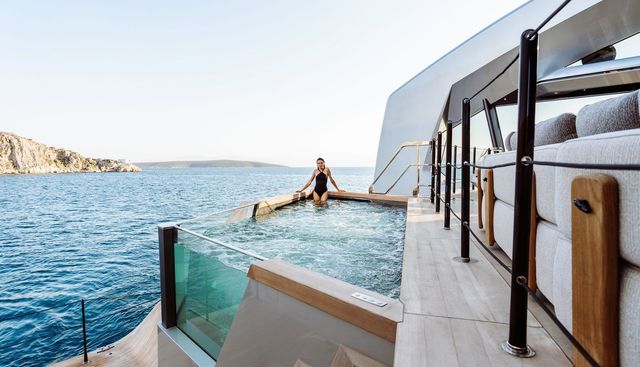 Her water sports inventory is extensive: two jet-skis, two F5S Seabobs, wakeboards, water-skis, two inflatable kayaks, a Lift3 Efoil, a sea scooter, a floating pool, a kneeboard, an inflatable jet-ski dock, and towable inflatables. THIS IS IT is well-matched to guests seeking a brand-new Italian-built charter yacht with a strong wellness programme and an active water sports platform. She is less suited to those who prioritise speed, a smaller crew footprint, or a heritage aesthetic over fresh construction.