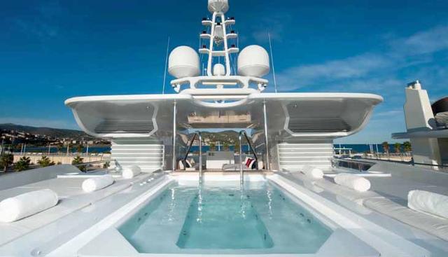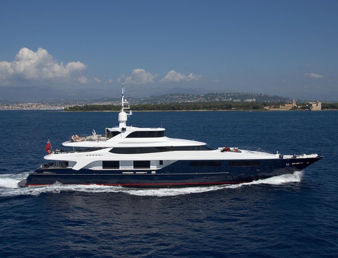 For yacht charter, TRIPLE SEVEN operates throughout the Western Mediterranean, with regions including the French Riviera, Ligurian Riviera, Portofino, Amalfi Coast, Corsica, Sardinia, Cannes, Monaco, and St Tropez. Her displacement hull turns at a maximum 17 knots with a cruising speed of 15 knots and a range of 5,000 nautical miles. Both underway and at-anchor stabilisers, alongside her beach club, swimming pool, swimming platform, and tender garage, position her as a vessel designed for extended, comfortable passage.