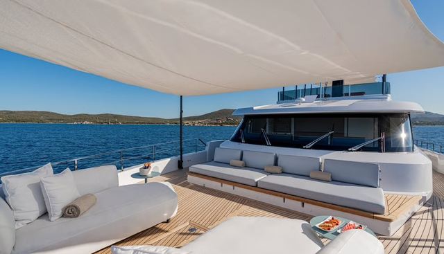 Twins is a 30-metre displacement motor yacht built by Custom Line in 2025, representing one of the Italian builder's most recent deliveries. Flying under an as-yet-unconfirmed flag, she is among the newest additions to the Mediterranean charter fleet, with her GRP hull and displacement architecture placing her firmly in the category of yachts built for comfort and sea-keeping over outright speed.